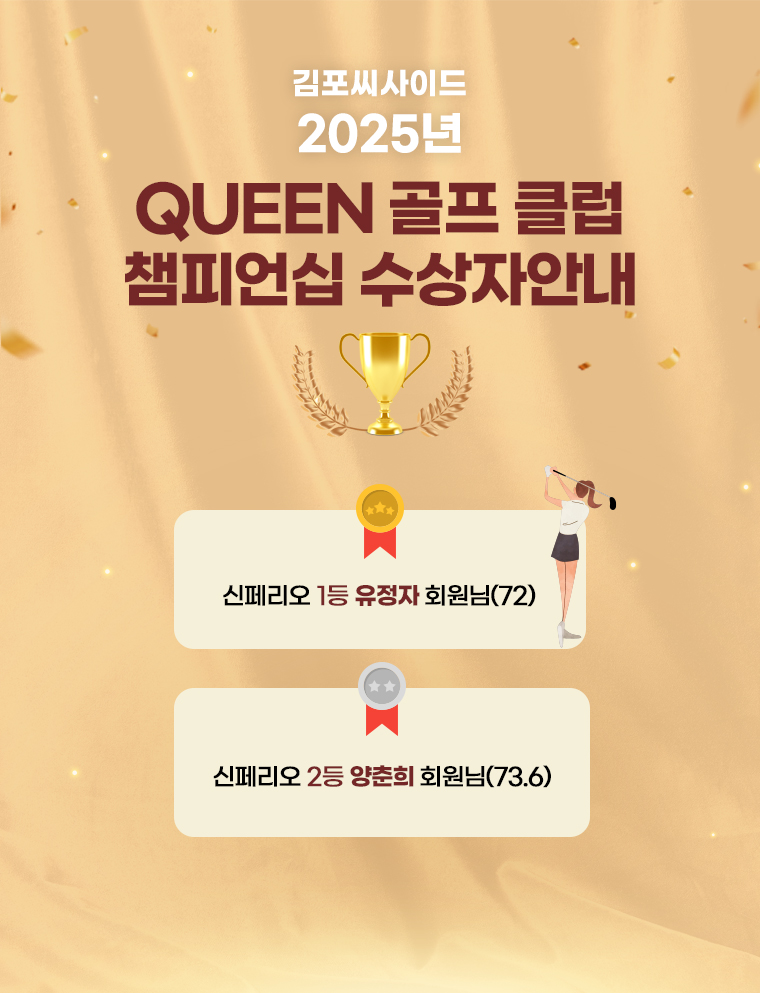 Home 정보마당 명예의 전당 명예의 전당 제목 2025년 퀸 골프 클럽 챔피언십 수상자안내 작성자 관리자 작성일 2025.12.10 조회 65 다음 글 다음글이 없습니다. 이전 글 제 16회 김포 QUEEN 골프대회 수상자 안내 목록으로