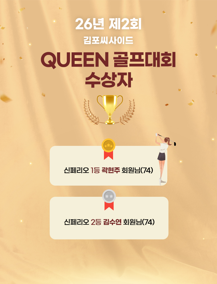 Home 정보마당 명예의 전당 명예의 전당 제목 26년 제2회 Queen 골프대회 수상자 안내 작성자 관리자 작성일 2026.04.07 조회 47 다음 글 26년 제3회 King 골프대회 수상자 안내 이전 글 26년 제2회 King 골프대회 수상자 안내 목록으로