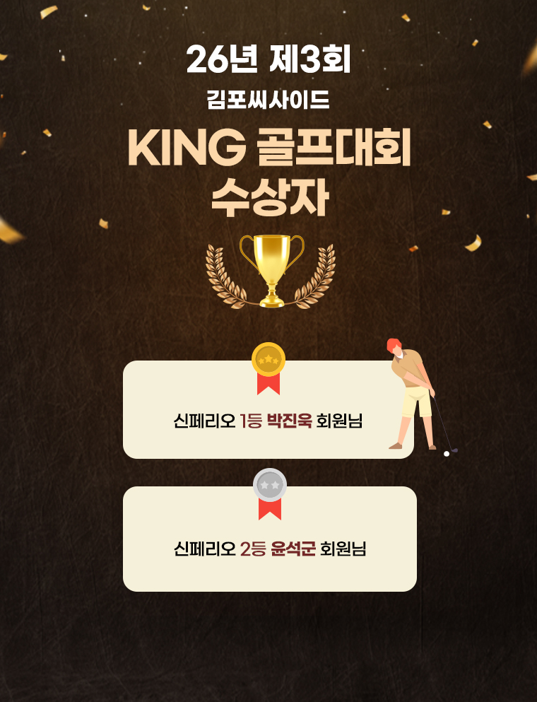 Home 정보마당 명예의 전당 명예의 전당 제목 26년 제3회 King 골프대회 수상자 안내 작성자 관리자 작성일 2026.04.14 조회 38 다음 글 26년 제3회 Queen 골프대회 수상자 안내 이전 글 26년 제2회 Queen 골프대회 수상자 안내 목록으로